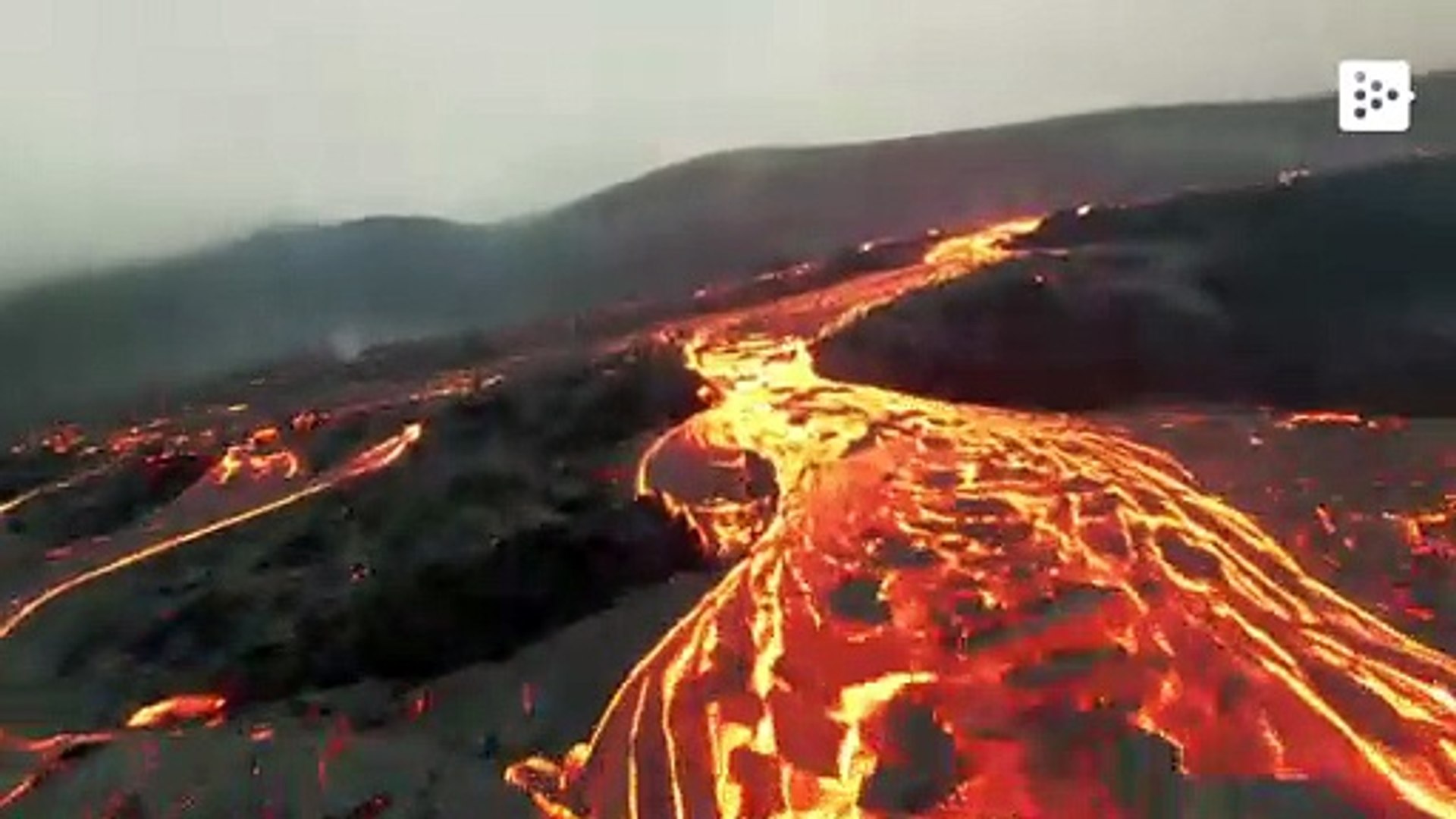 Un dron "surfea" sobre la lava del volcán Fragadalsfjall